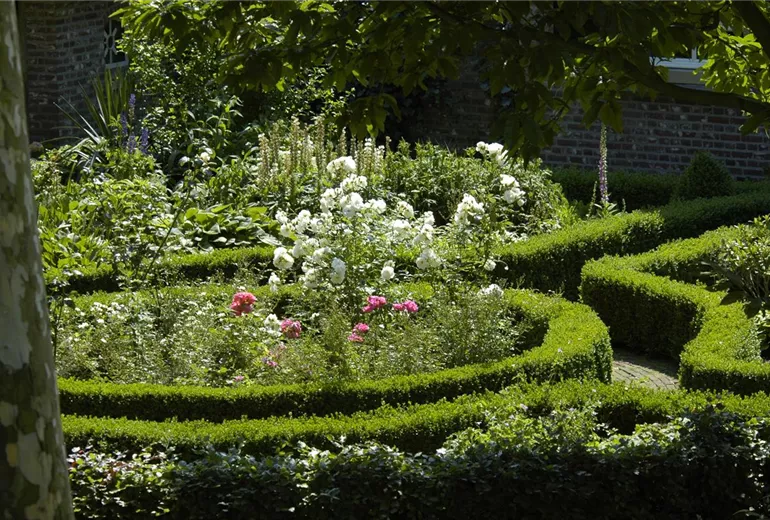 Zusätzliche Akzente schaffen Sie durch Beeteinfassungen, Rankhilfen und Dekoelemente aus natürlichen Materialien wie Holzzäunchen, Weidenranken, Buchs und Hecken. Hauptsache üppig, lautet einer der Wahlsprüche für den Cottage Garden.