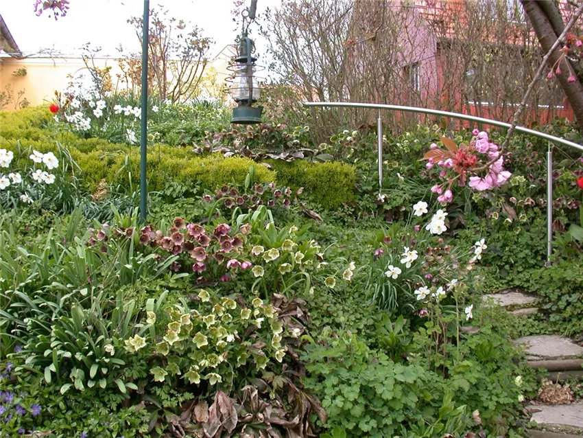Klassisch stehen im Cottage Garden Clematis, Rittersporn, Fingerhut, Nachtkerze, Iris, Mohn, Dahlien, Lupinen, Calendula, Veilchen, Margeriten, Vergissmeinnicht aber auch alle blühenden Kräuter. Alle Zwiebelgewächse, wie die Küchenzwiebel, Knoblauch, Tulpe und Co., aber auch Zierlauch, Frauenmantel und Akelei.