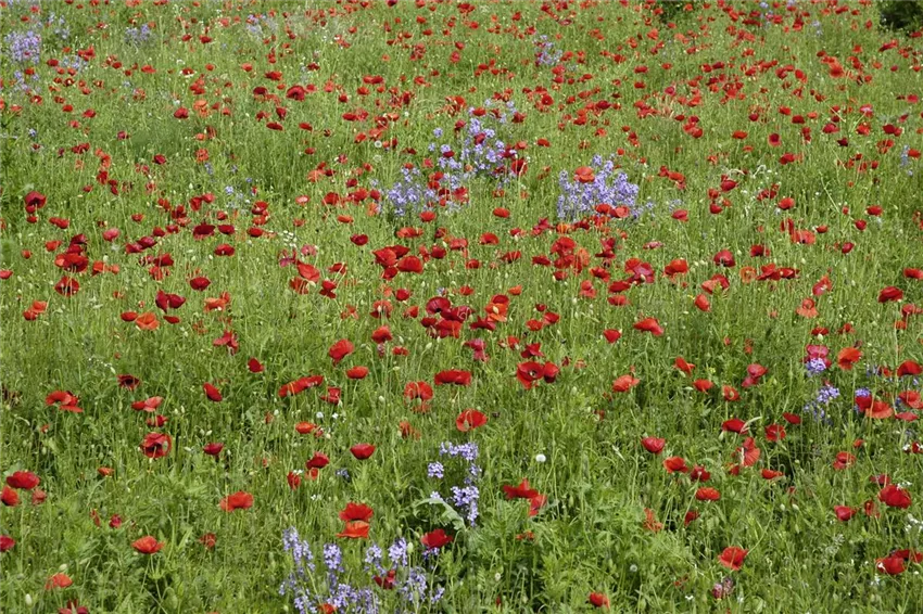 Klatschmohn darf im Garten in keinem Staudenbeet fehlen. Im Naturgarten fügt sich der Klatschmohn zusammen mit anderen Ackerbegleitpflanzen wie Kornblume und Kornrade ein, macht einen natürlichen Eindruck und sorgt für Harmonie im Staudenbeet. Auch für Balkon und Terrasse ist der Klatschmohn geeignet. Da er aber als Ackerwildpflanze eine Wuchshöhe von bis zu 60 Zentimetern erreichen kann, sollte man für Balkon und Terrasse eher auf die neuen Zuchtformen zurückgreifen. Die werden nicht so groß und mittlerweile sind sie auch in den unterschiedlichsten Blütenfarben erhältlich. Ausgesät wird Klatschmohn im März und April direkt ins Freiland. Die Samen vom Klatschmohn sind Lichtkeimer und werden deshalb nur auf die Erde gelegt und leicht angedrückt und nicht mit zusätzlicher Erde bedeckt. Wenn sich der Klatschmohn nach der Blüte selbst aussät, liegen die Samen auch auf der Erde auf und keimen dort. Wenn sich die ersten Jungpflanzen entwickelt haben, kann der Bestand ausgedünnt und die einzelnen Pflanzen mit einem Abstand von 25 Zentimetern gepflanzt werden. Werden die Blütenstände nach der Blüte nicht entfernt, kommt der Klatschmohn im neuen Jahr von selbst wieder.